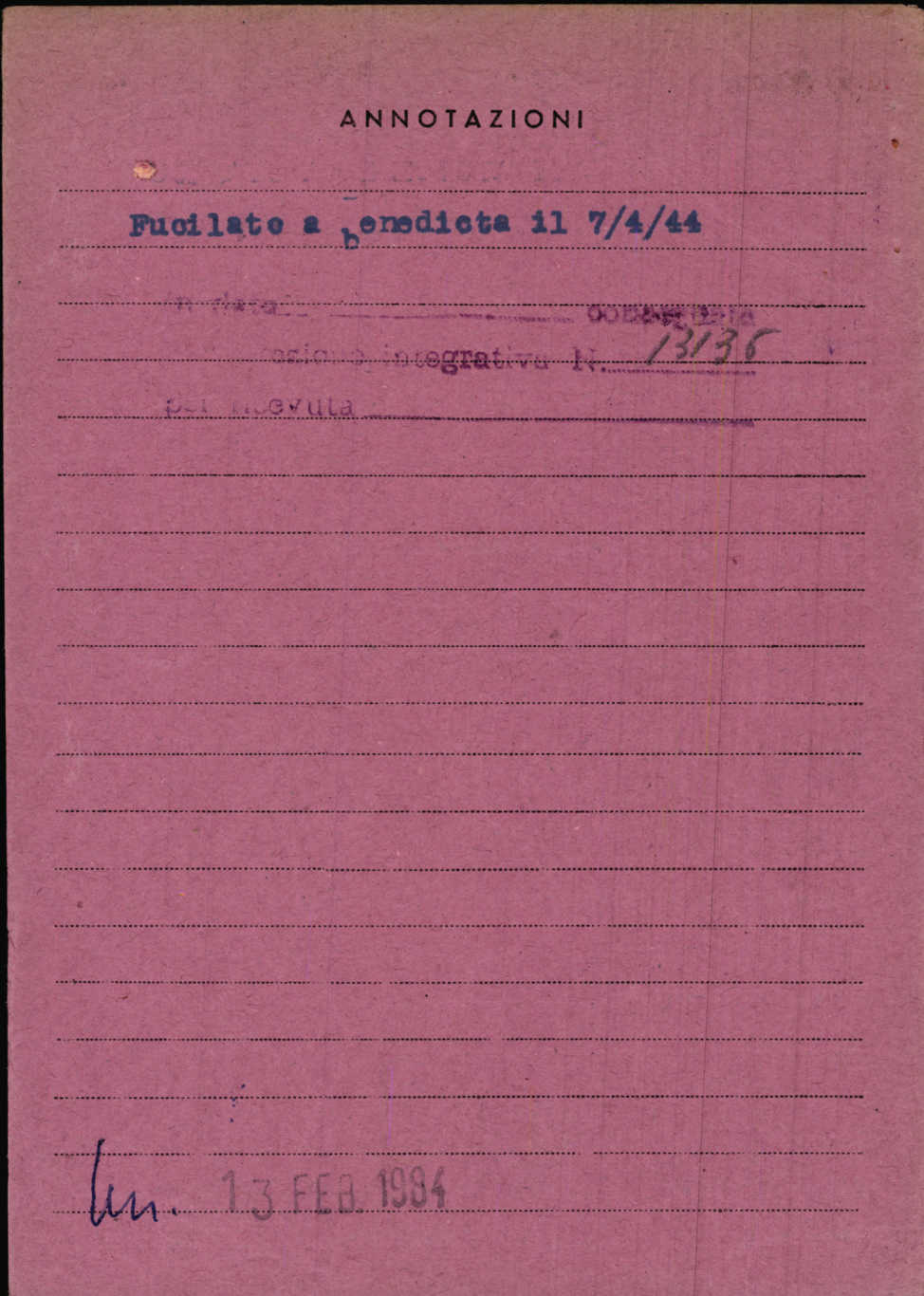 Morto a Parodi Ligure (AL) il 7 aprile 1944.